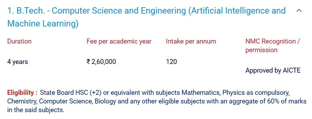 The annual tuition fee is 210,000, leading to a total of 850,000 over the course of the program. An additional fee of 10,000 is required for placement training. While tuition fees are fixed once set, students should be prepared for separate examination fees each semester.