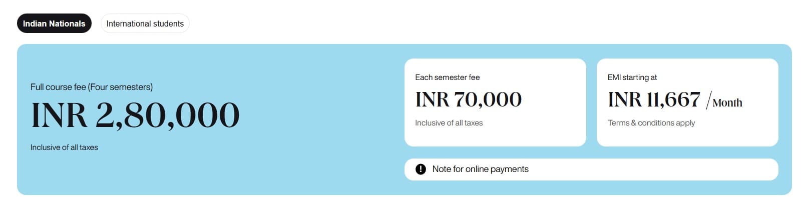 Earlier, M.Sc Data Science fees at Manipal University Online was ₹ 2.38 Lakhs (in 2025) for the entire course duration. This shows a fee increase of ₹ 42,000 over the year.