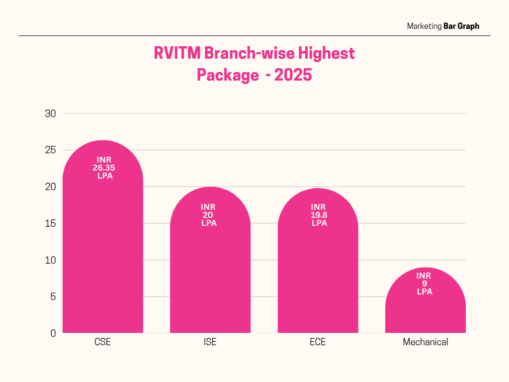 RVITM has released the placement report for 2025. The highest package offered for B.Tech in 2025 stood at INR 26.5 LPA, whereas the highest package in 2024 was INR 29 LPA. The average package is INR 11.42 LPA, and the lowest was INR 3.5 LPA. Below are the RVITM placements details for the academic year 2024-25.
