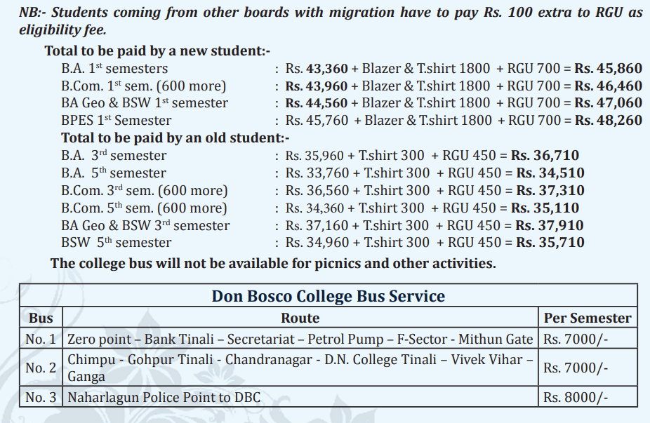 Don Bosco College Itanagar B.Com Marketing Management fees 2026 is ₹ 54,000 for the entire course duration.
