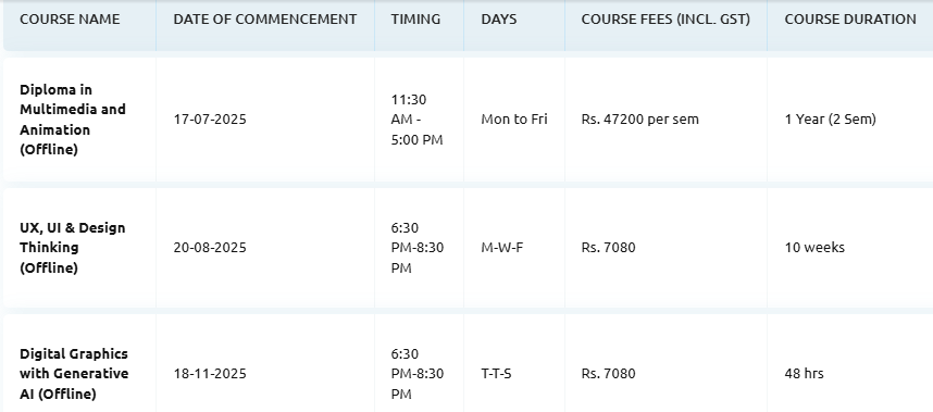 CAD Centre, Jadavpur University Kolkata offers a total of 30 seats for Diploma Animation and Multimedia.