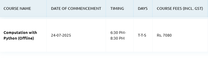 The minimum eligibility for admission to Certification Programming with Python at CAD Centre, Jadavpur University Kolkata is 10+2.