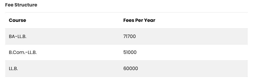 Students with at least 55-60% marks are eligible for placements. The college supports students' career readiness from the first semester. The annual fee for the LLB course is 35,000 INR, which is lower compared to other private colleges, although another fee structure of 45,600 INR per year is also noted. Scholarships are provided based on 12th-grade marks, with special considerations for SC, ST, economically disadvantaged, and minority groups. The scholarship application process involves downloading a form from the university's website, submitting it to the college, which forwards it to the university.