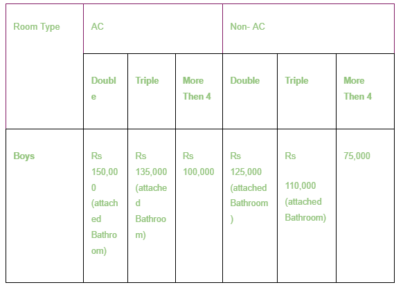 5. Double Sharing Non AC Rooms = 1,18,000/-