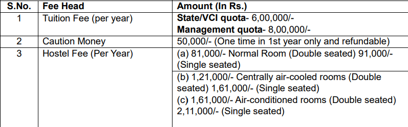 Arawali Veterinary College Sikar B.V.Sc Animal Husbandry fees in first year is ₹ 5.5 Lakhs. The detailed fees is mentioned below.Arawali Veterinary College Sikar Hostel Fee is ₹ 35,000 to 75,000.