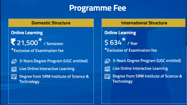 Earlier, BBA Digital Marketing fees at SRMIST Directorate of Online Education Kanchipuram was ₹ 1.29 Lakhs (in 2024) for the entire course duration. This shows that the fee has remained unchanged since 2024.