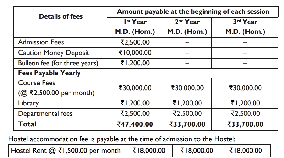 Earlier, M.D Homoeopathic - Philosophy & Organon fees at NIH Kolkata was ₹ 1.15 Lakhs (in 2022) for the entire course duration. This shows that the fee has remained unchanged since 2022.