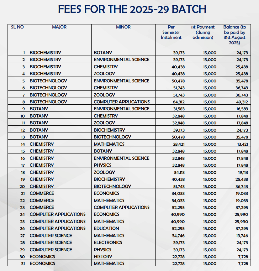The college is well-regarded for its faculty, noted for effective teaching methods and fostering open communication with students. This supportive environment is particularly emphasized in the chemistry department. Despite maintaining constant fees during the COVID period, which some found disappointing, the fees for first-year B.Sc students are about 44,000 INR for the first and second semesters, not including hostel expenses.