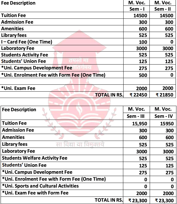 Vanita Vishram Surat M.Voc Fashion Design fees in first year is ₹ 44,300. The detailed fees is mentioned below.
