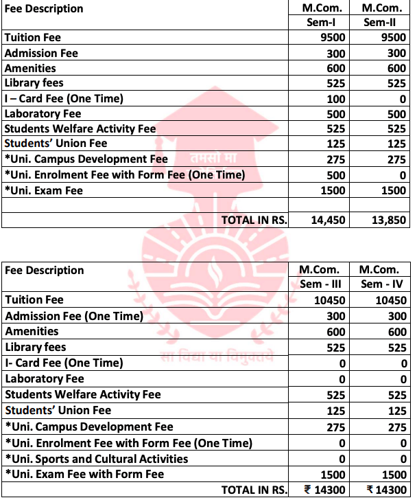 Vanita Vishram Surat M.Com fees in first year is ₹ 28,300. The detailed fees is mentioned below.