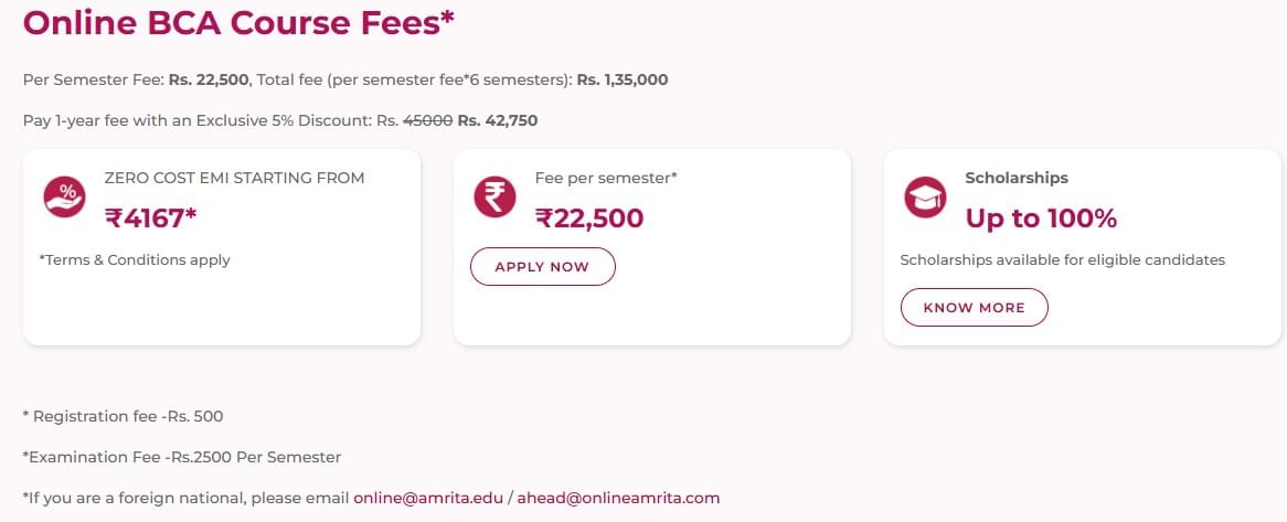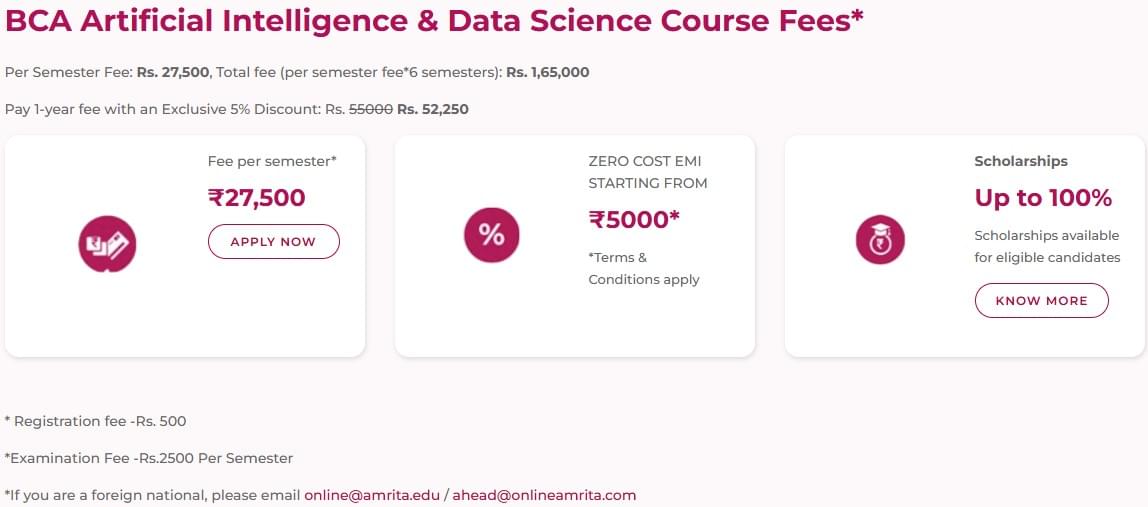 Amrita Ahead Online Kollam BCA fees 2025 is ₹ 1.51 Lakhs for the entire course duration.