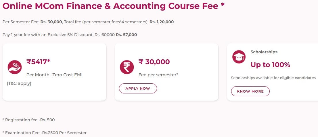 Amrita Ahead Online Kollam M.Com Accounting and Finance fees 2025 is ₹ 1.31 Lakhs for the entire course duration.