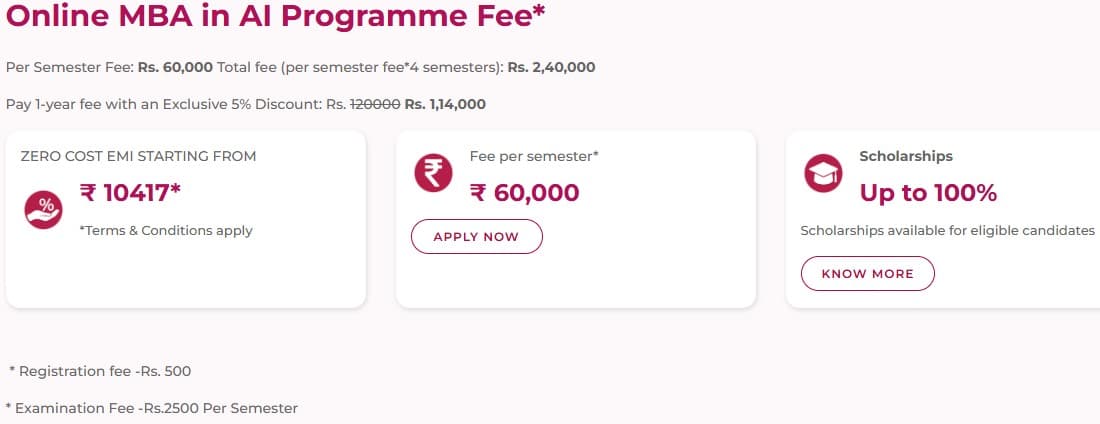Amrita Ahead Online Kollam MBA Artificial Intelligence and Machine Learning fees 2025 is ₹ 2.51 Lakhs for the entire course duration.