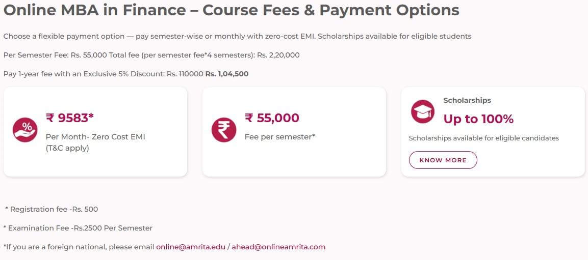 Amrita Ahead Online Kollam MBA Finance fees 2025 is ₹ 2.31 Lakhs for the entire course duration.