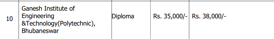 Ganesh Institute of Engineering & Technology Industrial Training Centre Bhubaneswar Polytechnic Civil Engineering Fee has not been released yet. For reference you can check the previous year academic fees in the section below.