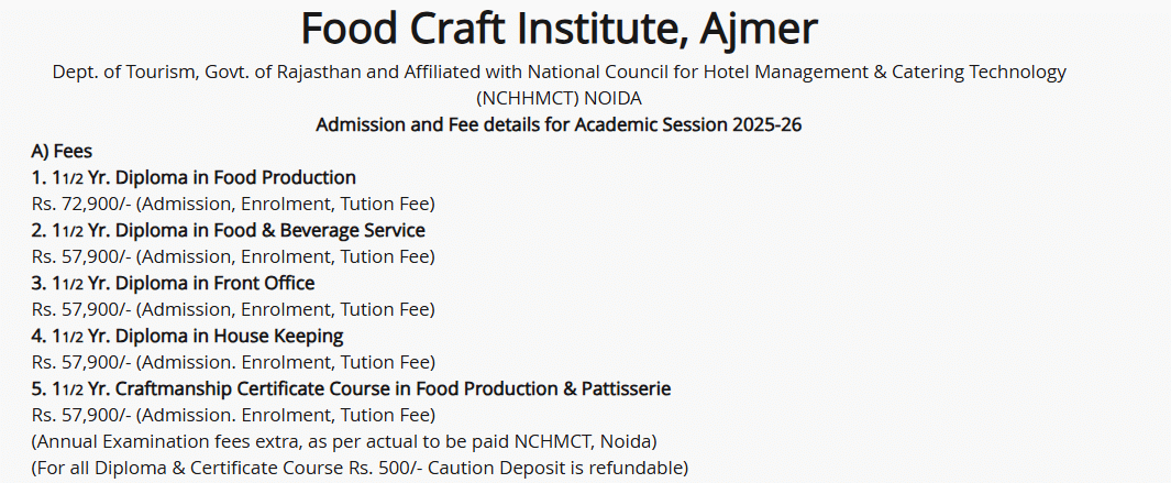 | Food Craft Institute Ajmer | ₹ 72,900 |