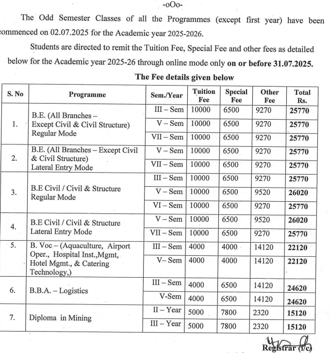 | Semester Wise Fees | ₹25770 | ₹25770 | ₹25770 | ₹25770 | ₹25770 | ₹25770 |