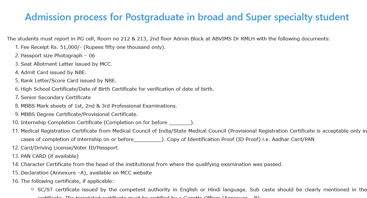 Admissions to DM Cardiology at ABVIMS are primarily based on NEET-SS. Candidates must have completed Post Graduation+ NEET SS to be eligible for admission. The overall NEET-SS cutoff for the DM Cardiology program is 88 - 220 across all categories. Check ABVIMS Admission
