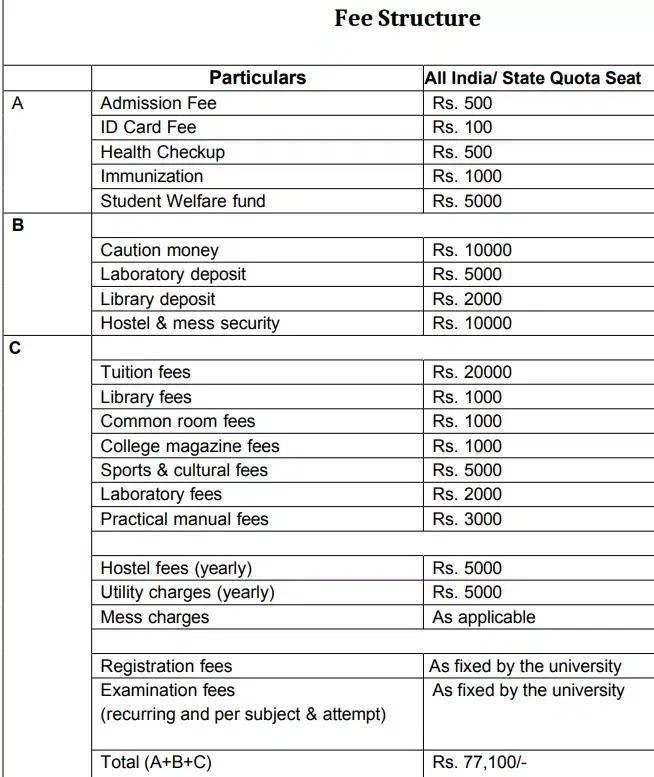 - This includes a total tuition fee of ₹ 1 Lakh, Caution Fees of ₹ 10,000, Other Fees of ₹ 79,100.