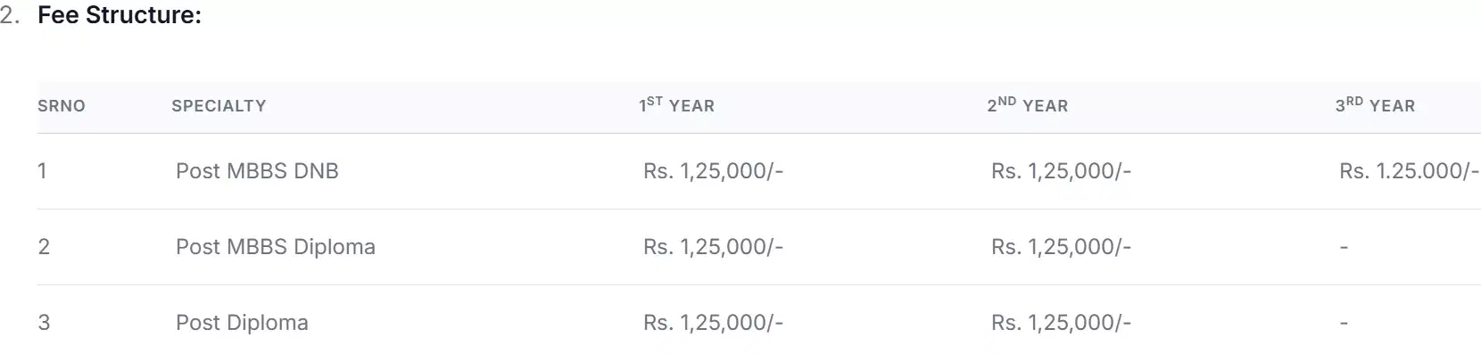 - Candidates need to pay ₹ 1.25 Lakhs in the first year.