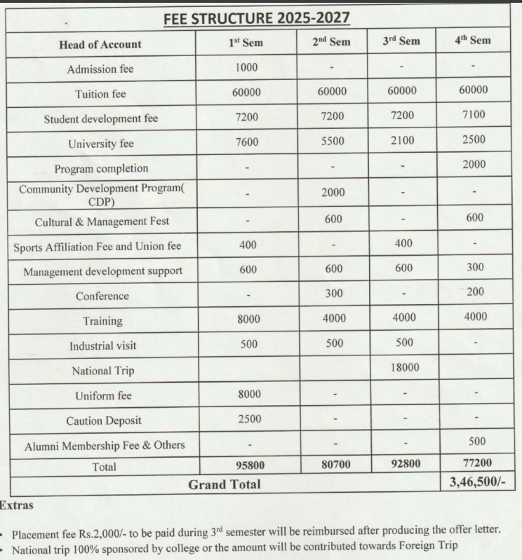 - This includes a total tuition fee of ₹ 2.4 Lakhs, Caution Fees of ₹ 2,500, Other Fees of ₹ 1.03 Lakhs.