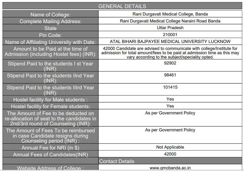 Rani Durgavati Medical College Banda Hostel Fee is ₹ 4,800.