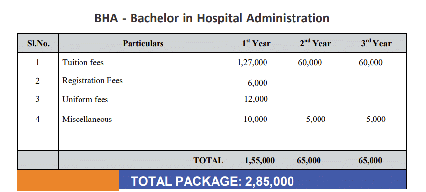 - The total fees for BHA is ₹ 2.85 Lakhs.