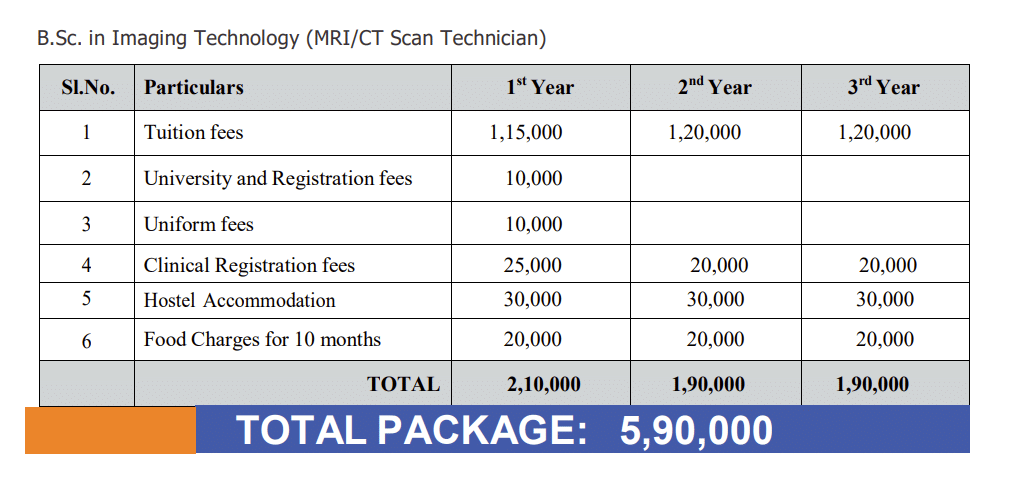 - The total fees for B.Sc Imaging Technology is ₹ 5.5 Lakhs.