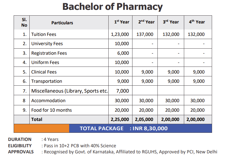 - The total fees for B Pharma is ₹ 7.5 Lakhs.