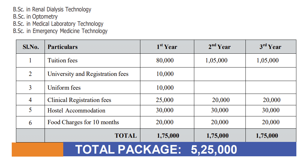 - The total fees for B.Sc Optometry is ₹ 5.5 Lakhs.