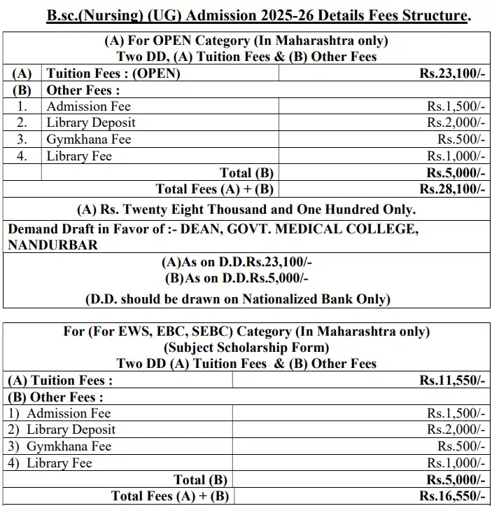 Government Medical College and Hospital Nandurbar B.Sc (Nursing) fees 2025 is ₹ 1.02 Lakhs for the entire course duration.