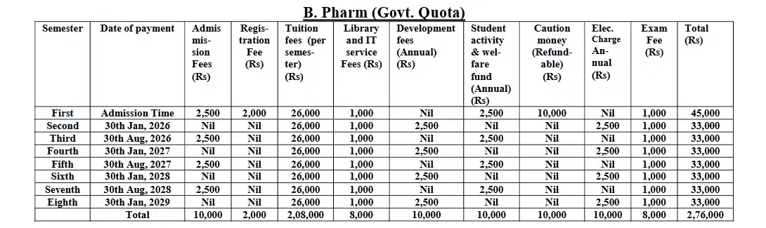 | Semester Wise Fees | ₹76000 | ₹63000 | ₹64000 | ₹63000 | ₹64000 | ₹63000 | ₹64000 | ₹63000 |