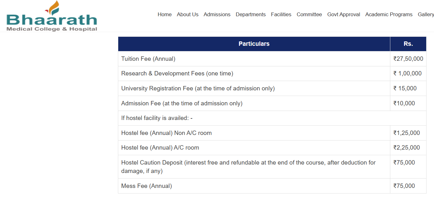 Find detailed Bhaarath Medical College and Hospital Chennai MBBS fees, eligibility, admission dates, cutoff and ranking below.