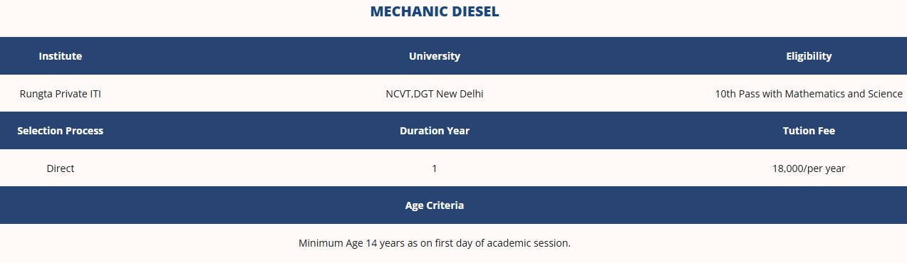 Sanjay Rungta Group of Institutions Bhilai Certification Diesel Mechanics Admission Process