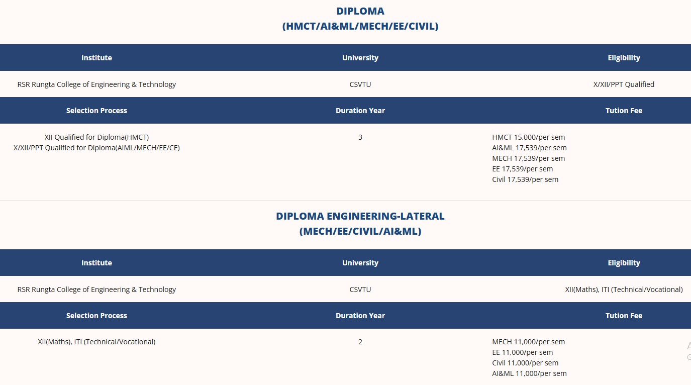 Sanjay Rungta Group of Institutions Bhilai Polytechnic Mechanical Engineering Fees