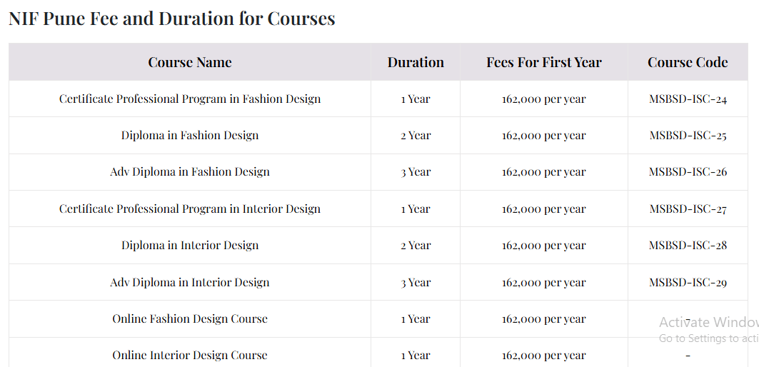 | Inter National Institute of Fashion Design Pimpri | ₹ 3.24 Lakhs |