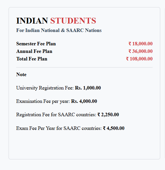 | Fees (2025 - 2026) | Year 1 (in INR) | Year 2 (in INR) | Year 3 (in INR) |