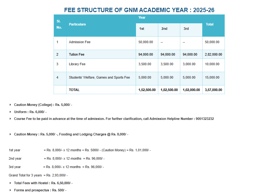 | Fees (2025 - 2026) | Year 1 (in INR) | Year 2 (in INR) | Year 3 (in INR) |