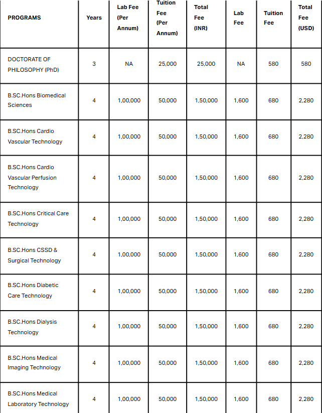 | Fees | Year 1 (in INR) | Year 2 (in INR) | Year 3 (in INR) |