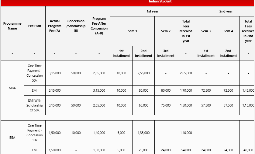 - Candidates need to pay ₹ 3.15 Lakhs in the first year.