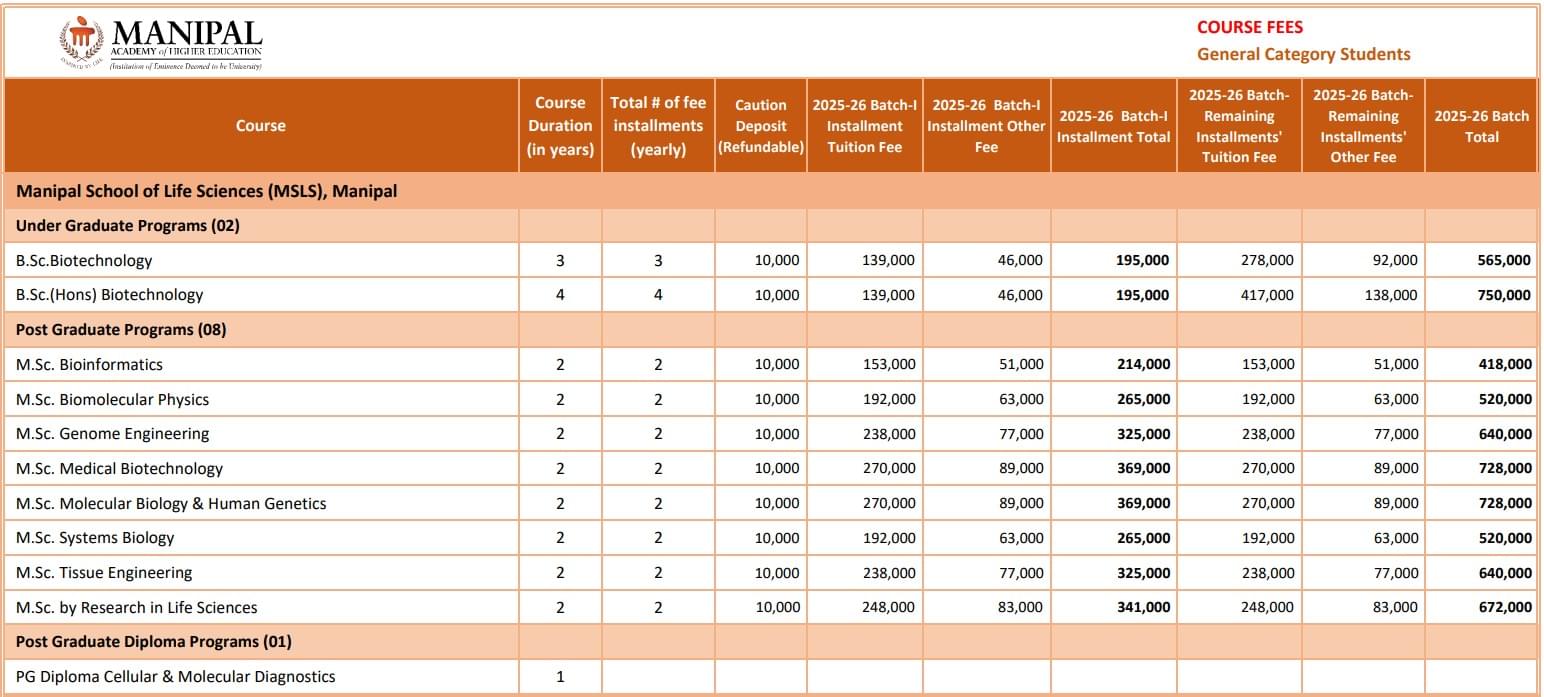 Manipal School of Life Sciences Fees