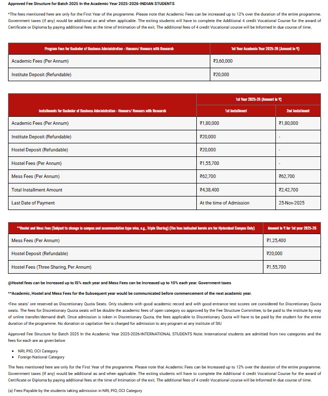 Symbiosis Centre for Management Studies Hyderabad BBA Business Analytics fees 2025 is ₹ 11 Lakhs for the entire course duration.