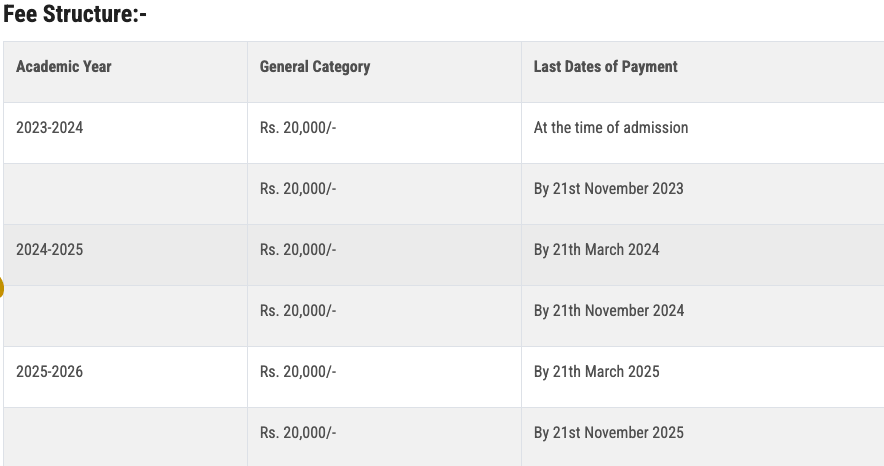 | Semester Wise Fees | ₹20000 | ₹20000 | ₹20000 | ₹20000 | ₹20000 | ₹20000 |