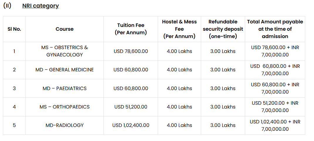 - Candidates need to pay ₹ 28.5 Lakhs in the first year.