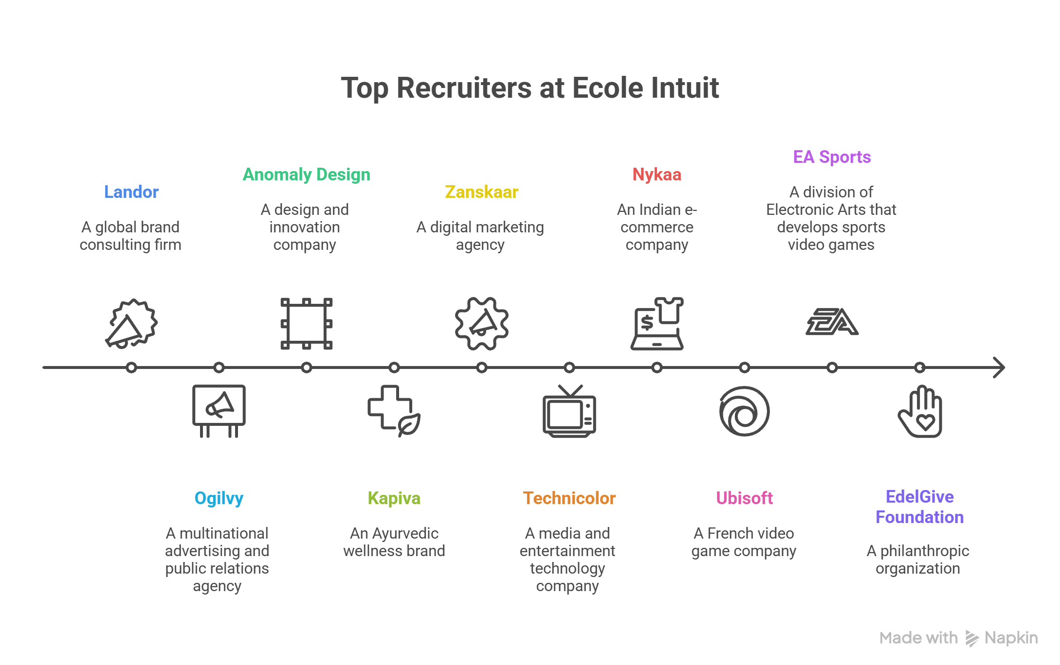 Ecole Intuit Lab Placements 2025 ended recently. For the same year, the highest package stood at INR 10 LPA, while Ecole Intuit average package was recorded at INR 8 LPA. Some of the top recruiters included leading companies like Nykaa, Zanskar, Technicolour, EA Sports, and Kapiva.