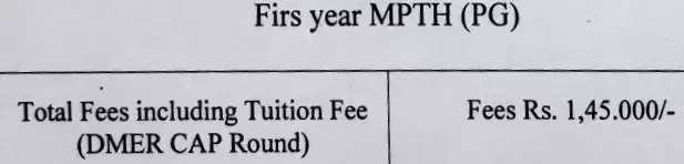 Terna Physiotherapy College Navi Mumbai M.P.T Cardiorespiratory fees 2025 is ₹ 2.9 Lakhs for the entire course duration.