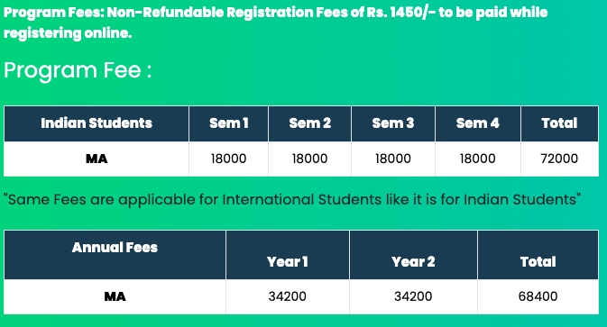| Semester Wise Fees | ₹19450 | ₹18000 | ₹18000 | ₹18000 |