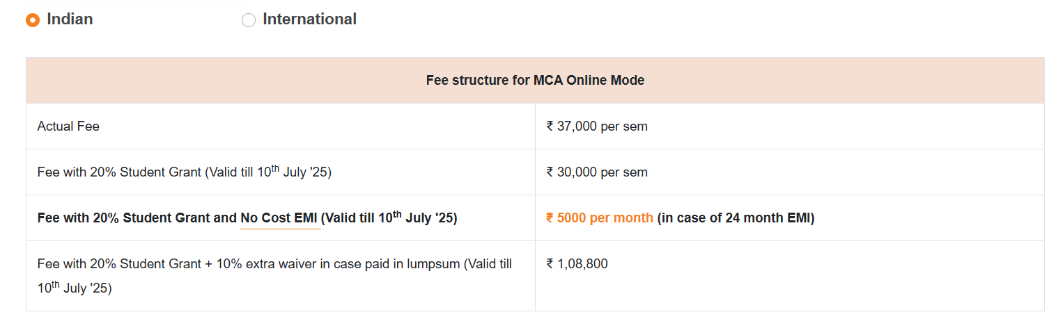 For students applying under the NRI quota for admission, the total course fee for MCA Data Science at LPU Online Jalandhar is ₹ 4.59 Lakhs.