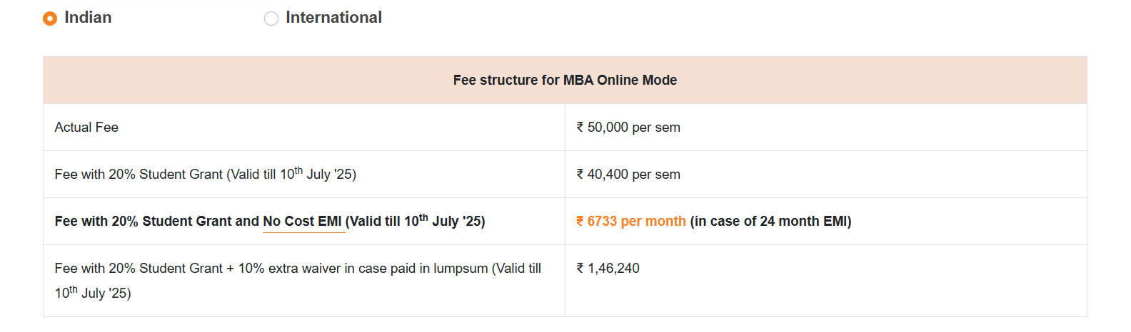 LPU Online Jalandhar MBA Finance fees 2025 is ₹ 2 Lakhs for the entire course duration.