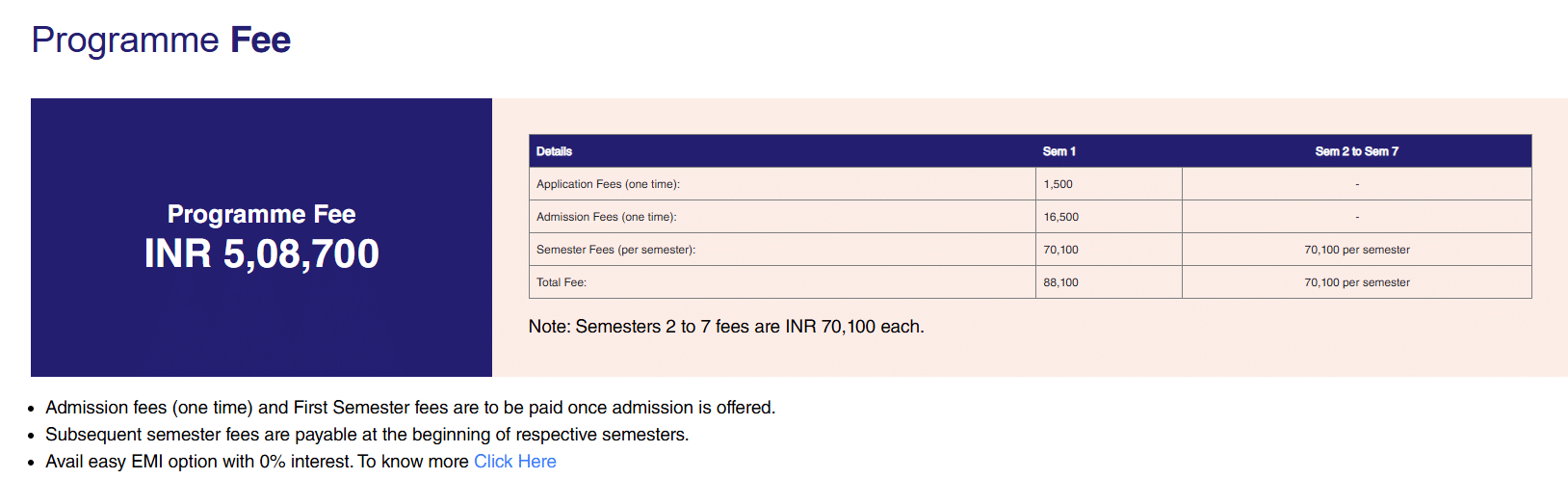 - Candidates need to pay ₹ 1.57 Lakhs in the first year.